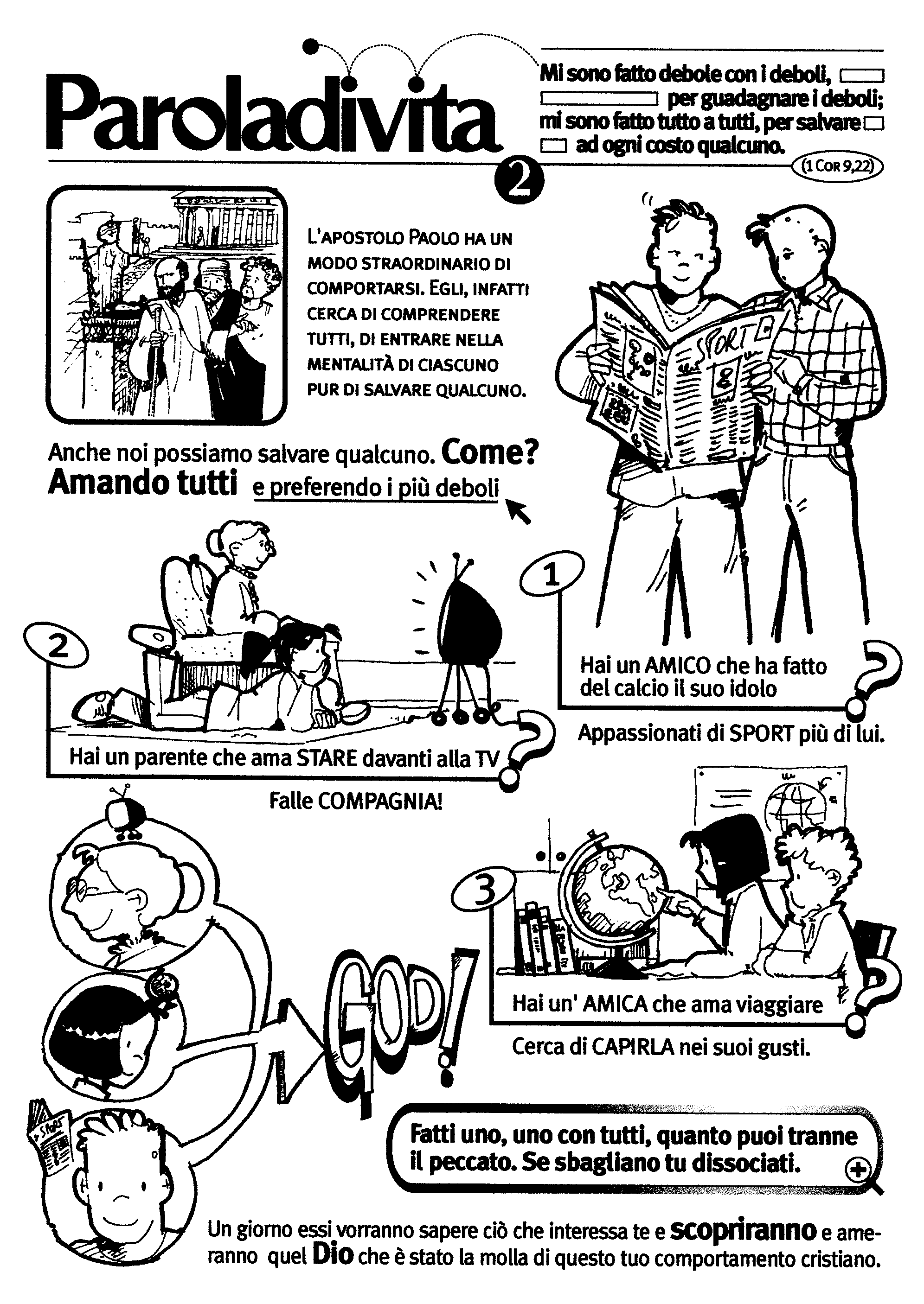 "Mi sono fatto debole con i deboli, per guadagnare i deboli; mi sono fatto tutto a tutti, per salvare ad ogni costo qualcuno." (1 Cor 9,22)