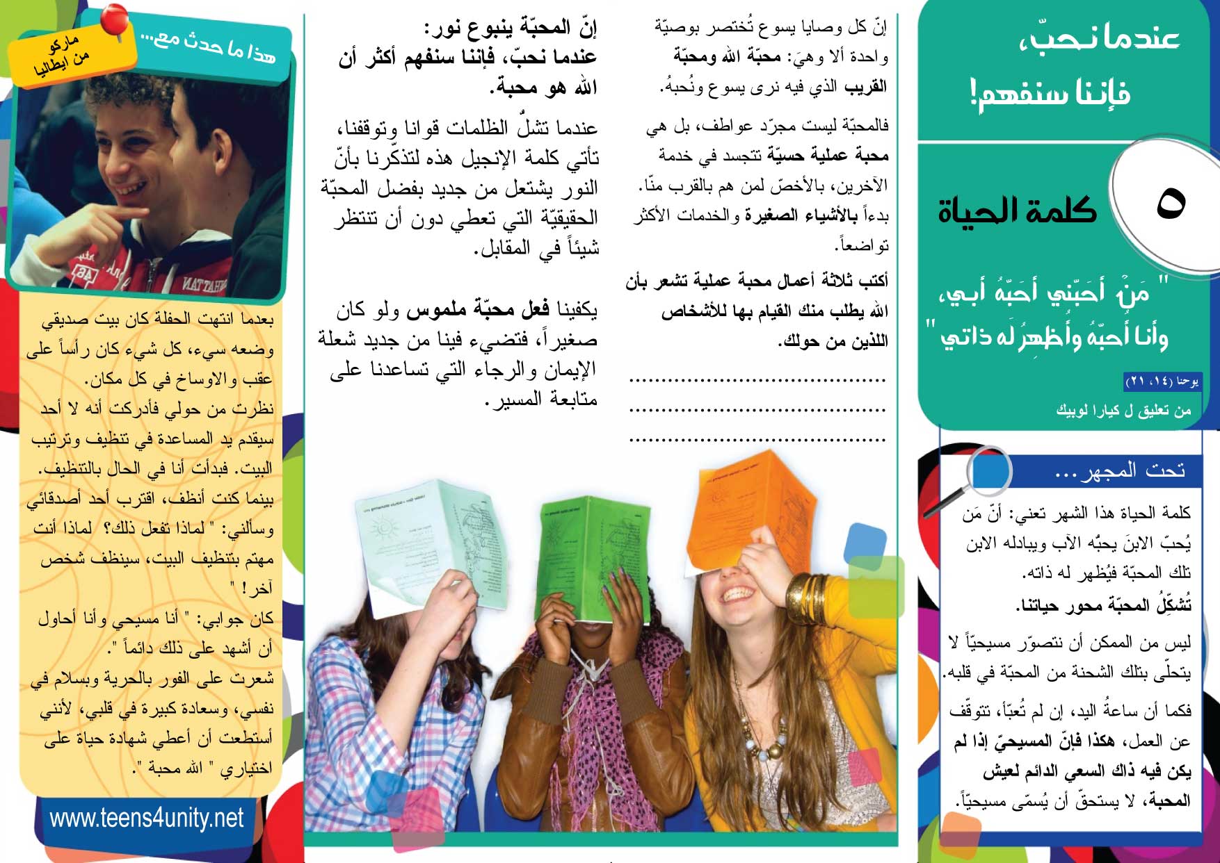 كلمة الحياة 05 - 2010 الذي يحبّني يحِبُّهُ أبي، وأنا أيضًا أحبُّهُ فأُظهرُ لَهُ نَفسي يوحنا 21/14
